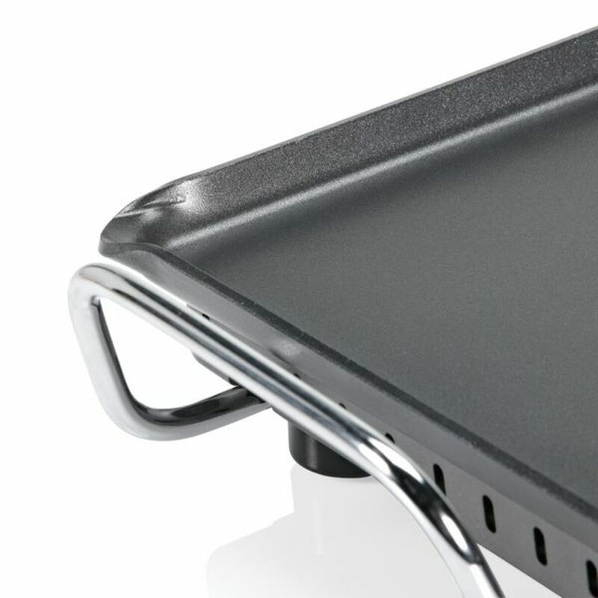 Integrated cool touch handles and fat drip corner for a tasteful and light result.