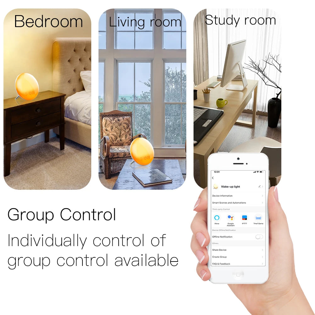 2. Smart App Control: The new 2nd Generation smart wake-up light is redesigned with Tuya/Smart Life App functions.The Smart Life/Tuya smart app helps to connect your smart wake-up light to your home 2.4Ghz Wi-Fi. You can conveniently control it anytime from anywhere.All functions of the wake-up light can be configured on App intelligently,in which transform your wake-up light into a smart one,as long as you add the device to your smart life app account successfully.